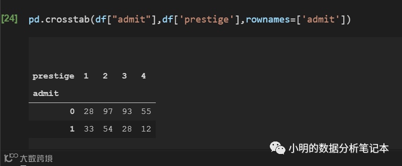 探索GRE、GPA、Rank与研究生录取与否的关系,相应变量为二进制数据 GRE: Graduate Record Exam scores GPA: grade point average Rank: prestige of the undergradute institution A researcher is interested in how variables effect admission into graduate school. The response variable, admit/don't admit, is a binary variable. 研究者感兴趣的是这些变量是如何影响研究生录取的。相应变量为一个二进制的变量