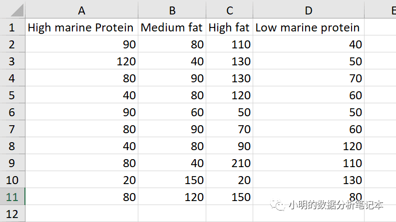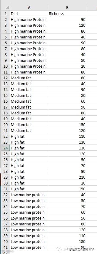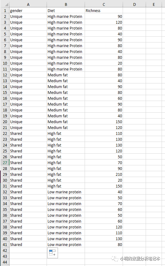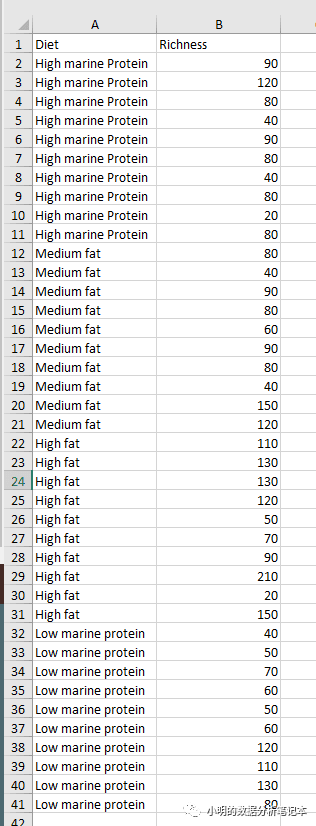 发现有一个箱图按照组别分箱,所以我们给原数据进行分组,数据如下: