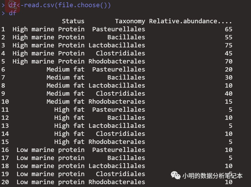 然后就是要读取数据了,为了方便初学者,我用file.choose跳出框来读取: