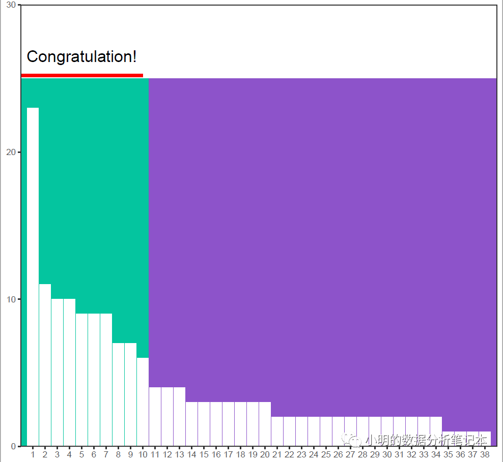 annotate(geom="text",x=5,y=26.5,label="Congratulation!",size=6)