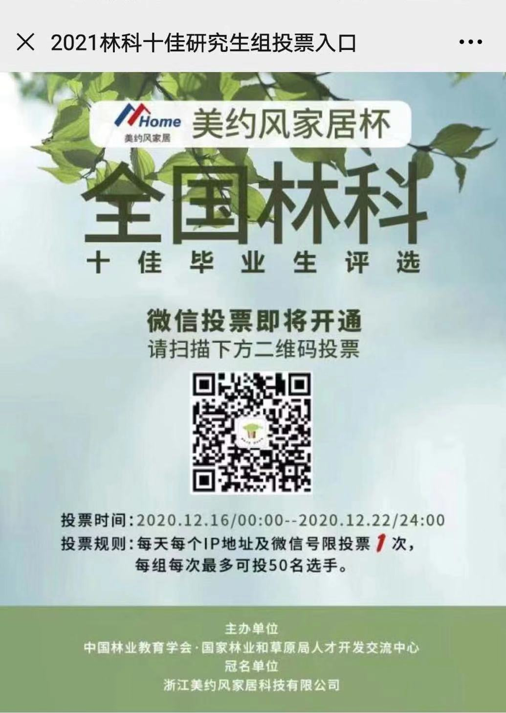 全国林科十佳毕业生评选 活动正在进行中,优秀的师弟也入围了,所以在公众号给他拉拉票,麻烦大家啦!