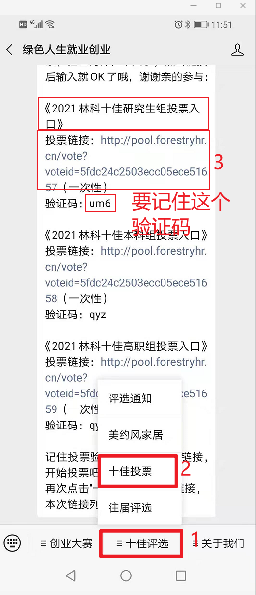 点击菜单栏的 十佳评选,然后点击十佳投票,就会跳出投票链接,然后点击研究生组的投票链接 (这里需要注意的是要记住验证码,投票的结尾要填)