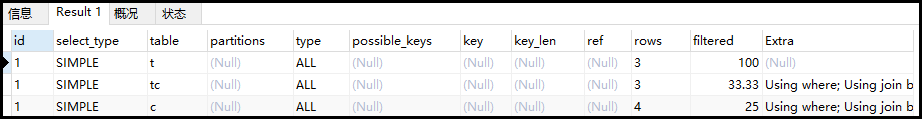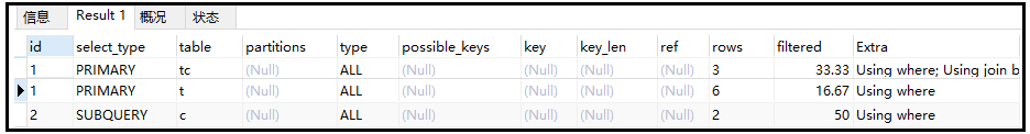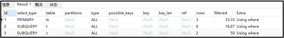 ⑥ union result:告诉我们,哪些表之间使用了union查询
