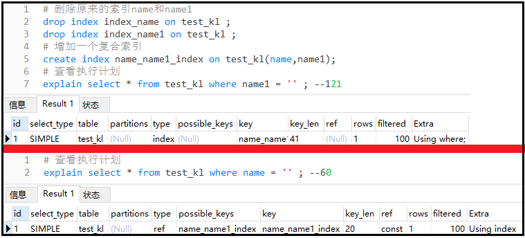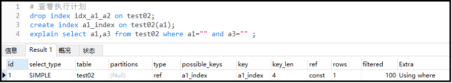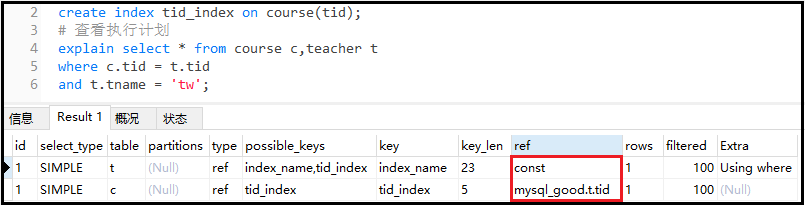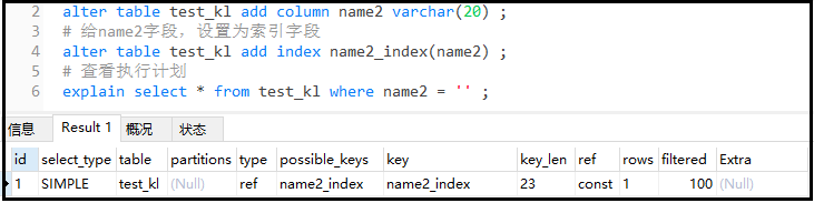 ① 优化1:基于此,我们进行索引的添加,并再次查看执行计划。