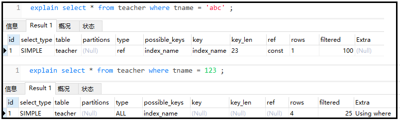 ⑦ 尽量不要使用类型转换(显示、隐式),否则索引失效