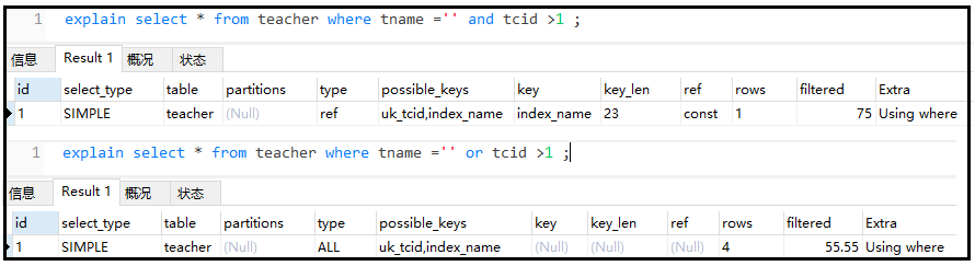 ④ SQL优化,是一种概率层面的优化。至于是否实际使用了我们的优化,需要通过explain进行推测。