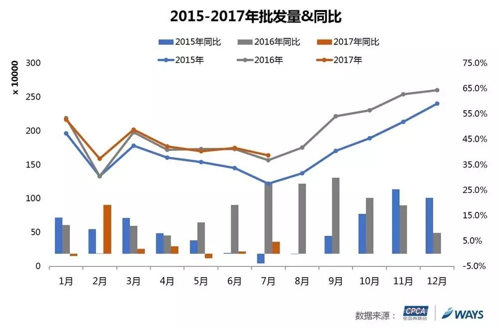 其次,7月季节性下滑明显,造成4.0%的减量;萨德事件持续影响,韩系车销量受阻,造成-4.7%的影响;零售恢复缓慢,库存压力依旧较大,造成3.6%的减量。