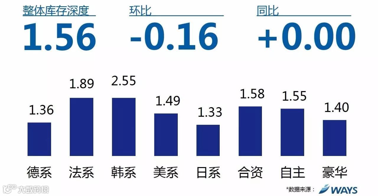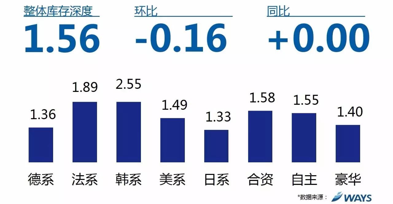 根据威尔森市场监测数据,5月经销商整体库存深度为1.56,环比下滑0.16,同比上升0.00,经销商库存压力得到一定缓解。
