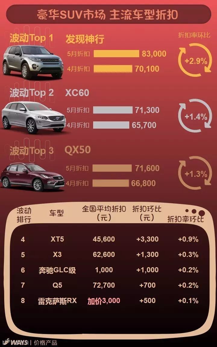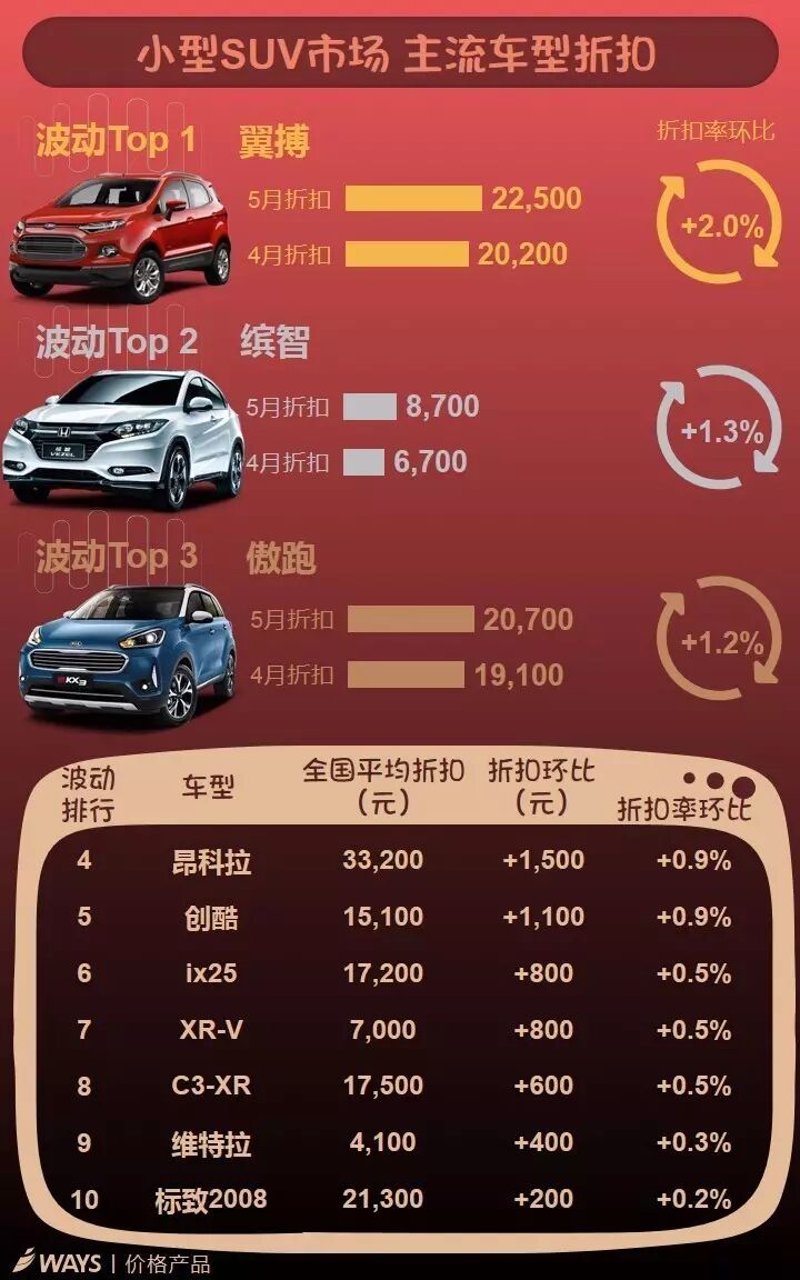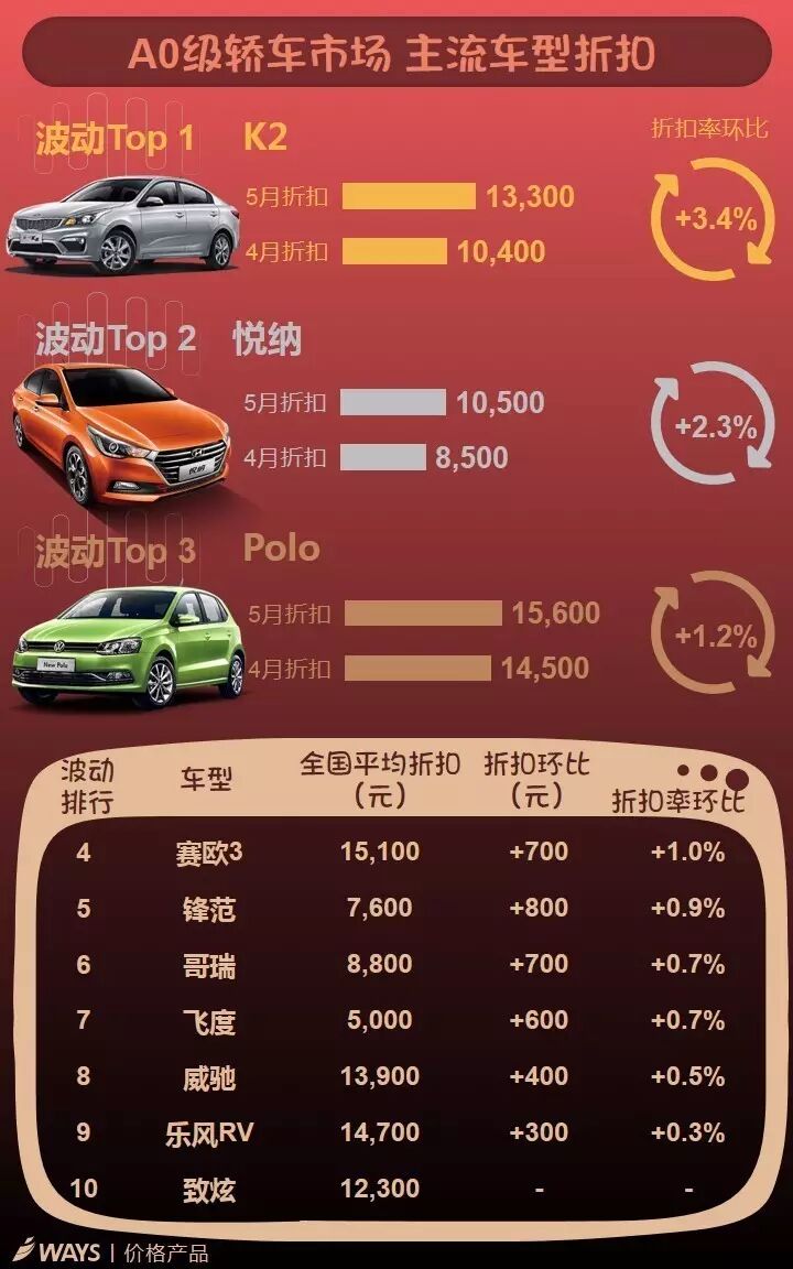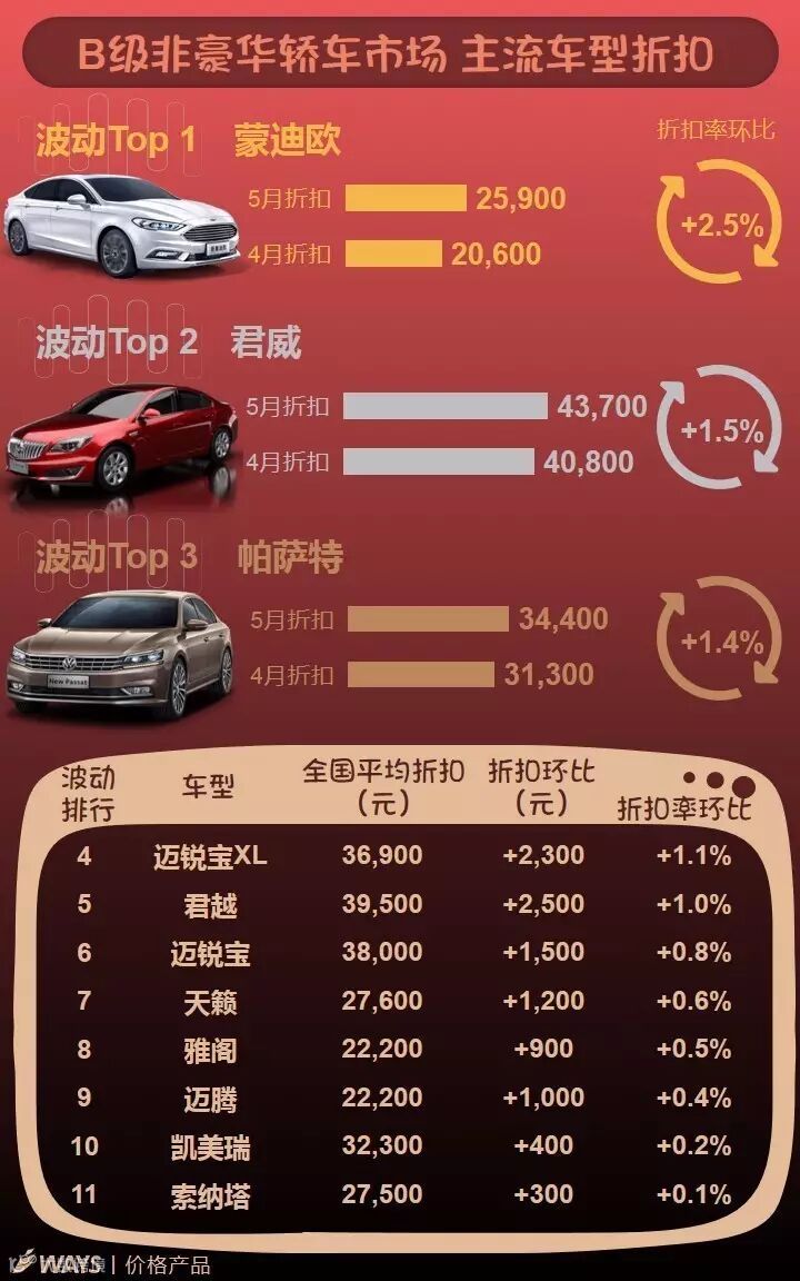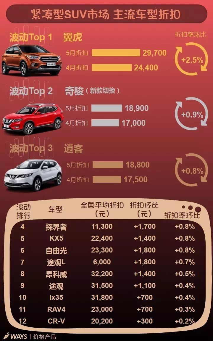 5月下半月主流车型折扣波动榜