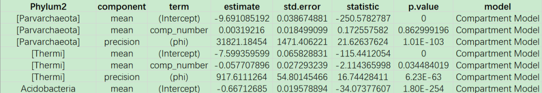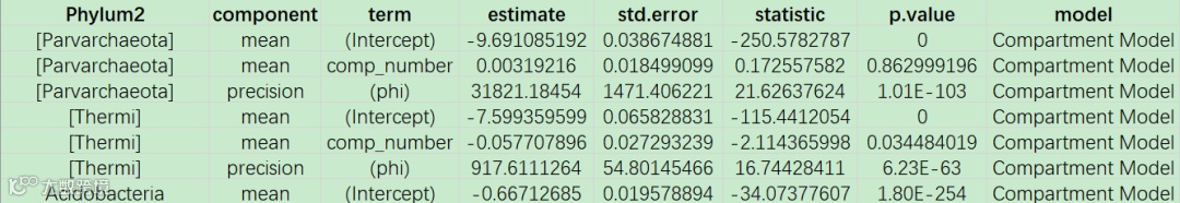 result_phylum <- data.frame(rbind(coefficient, phi), check.names = FALSE) #合并输出