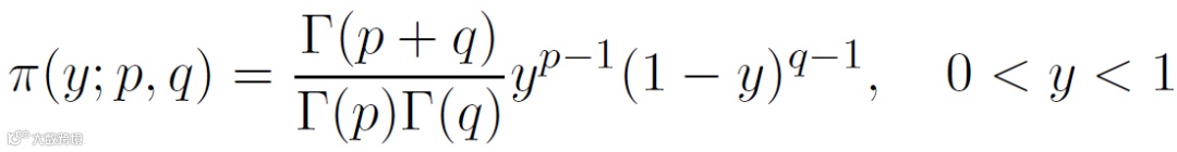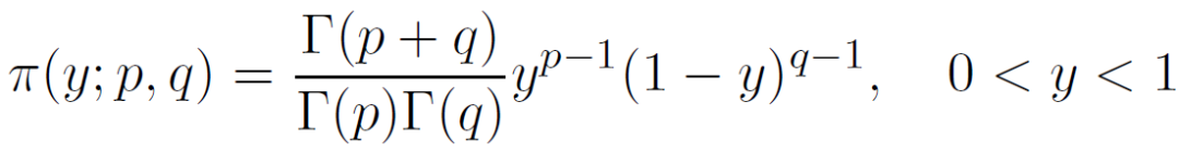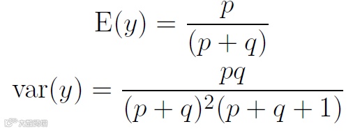 式中p>0且q>0,Γ(·)是伽马函数(gamma function),beta分布密度函数的均值E(y)和方差var(y)分别为: