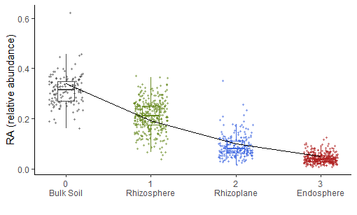 scale_x_continuous(breaks = c(0, 1, 2, 3), labels = c('0\nBulk Soil', '1\nRhizosphere', '2\nRhizoplane', '3\nEndosphere')) +