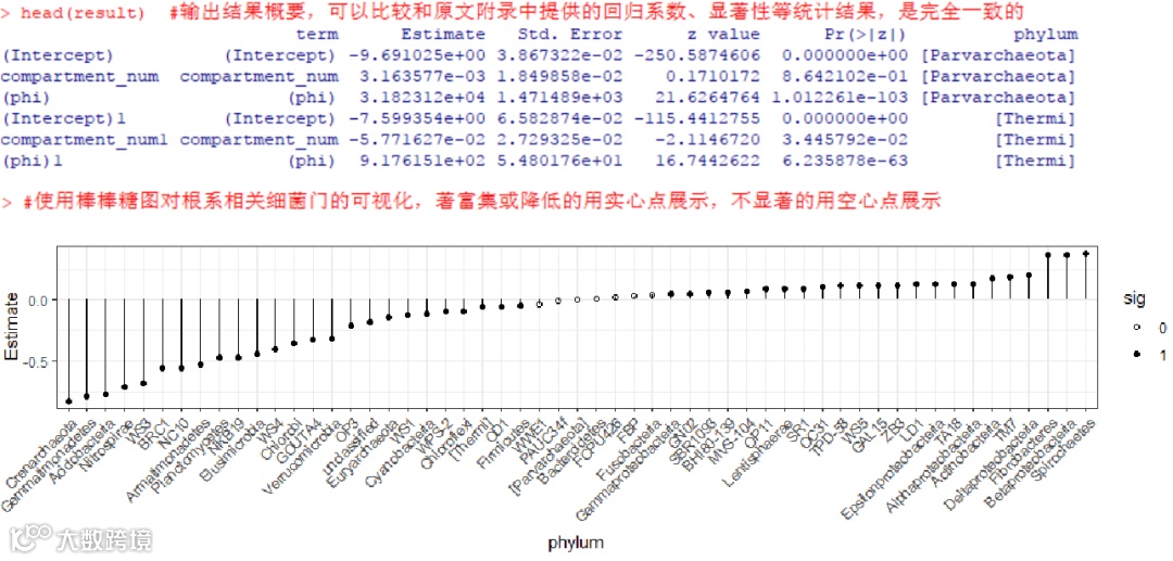 上文示例的所有输出值和该附表中的值是完全一致的,同学们自行比较即可,总之完全重现了原文中通过beta回归对特定微生物在土壤-根系微尺度区域的富集模式的分析。