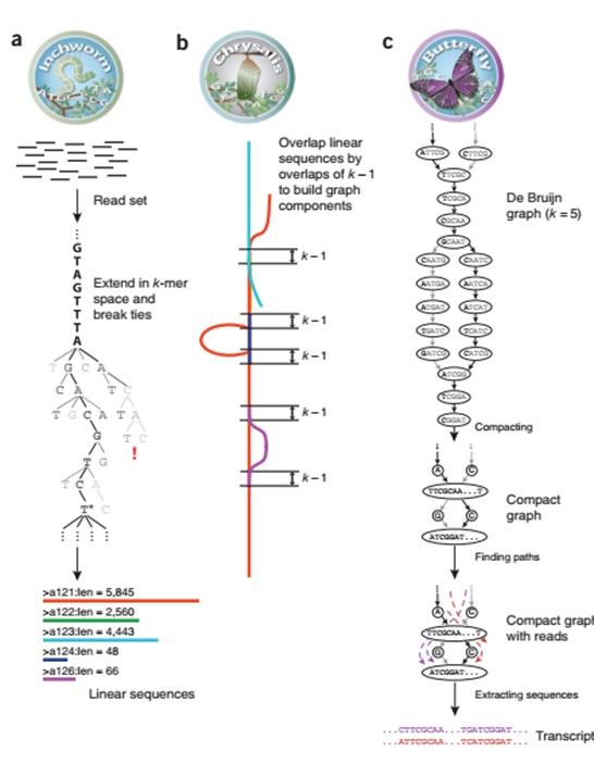 •Chrysalis: 将上一部生成的contig聚类,对每个类构建deBrujin graph