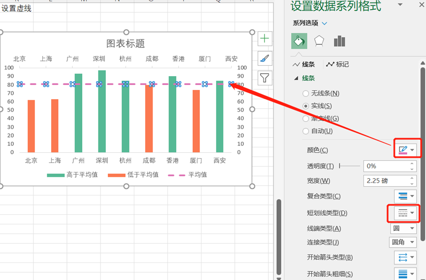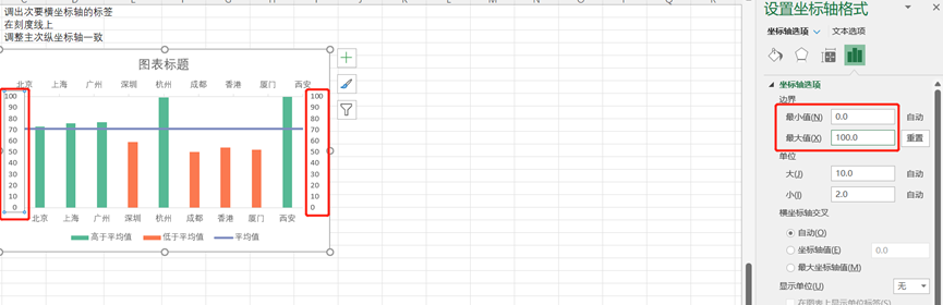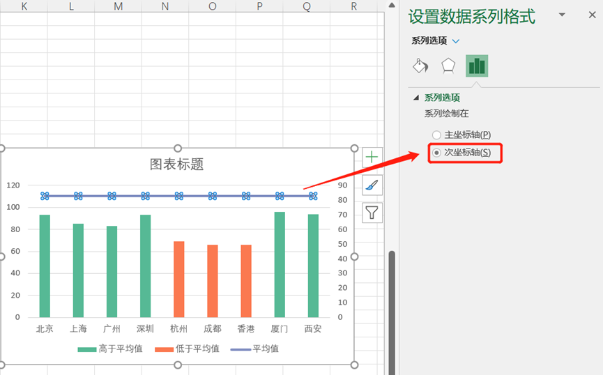 Step4:设置平均线,这一步很巧妙,用到了次坐标轴来让平均线更美观。