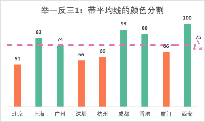 如果我们需要知道平均值所在的位置,就需要这种带平均线的柱形图了,不管颜色分割与否。