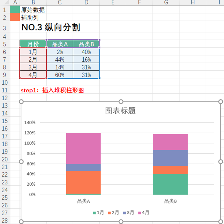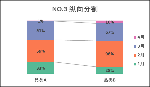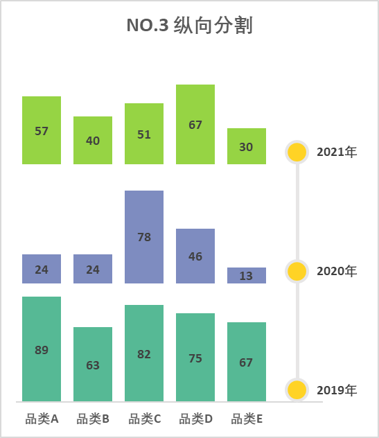 纵向分割的另一个例子,是这种纵向分割的多层柱形图,下面我们重点讲解多层柱形图的做法。