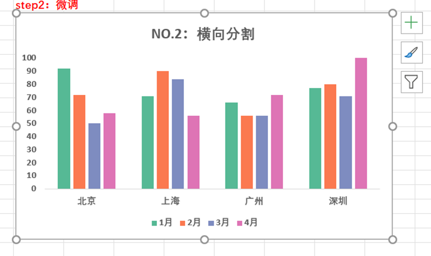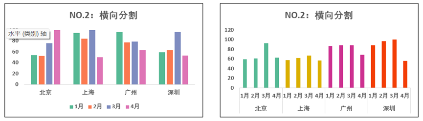 前面说的分割的思路都是颜色分割,现在我们来讲横向分割。横向分割顾名思义,就是在图表中对横坐标轴进行分割。