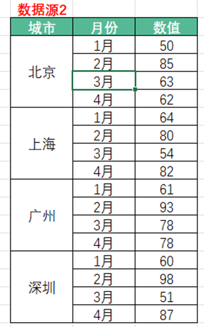 第二种数据源,是带有合并单元格的可整理成数据透视表形式的数据源。