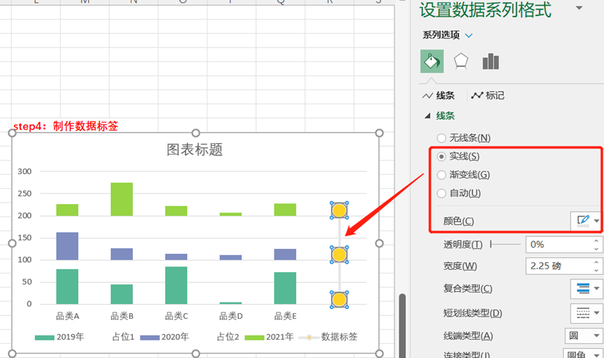 Step4:添加数据标签。直接添加的话,会出现辅助列含有#NA的字样。