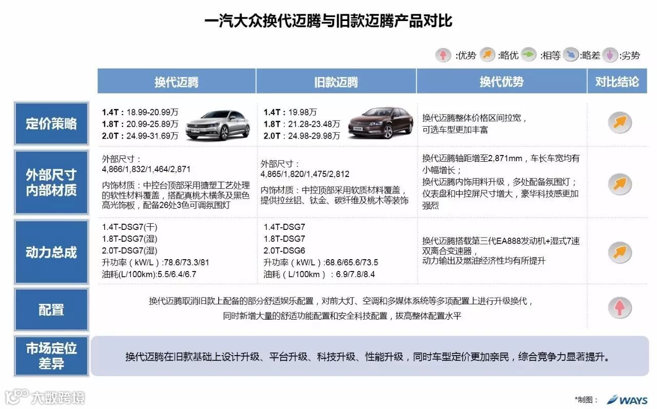 其在今年7月27日推出了换代车型“全新一代迈腾B8”,让我们再次把关注的焦点投向了它。那么,换代迈腾的产品竞争力究竟如何?能否继续捍卫同级别市场标杆车型的地位?“整容”有风险,小威君马上借“WAYS产品竞争力分析”量化分析工具为你解惑。