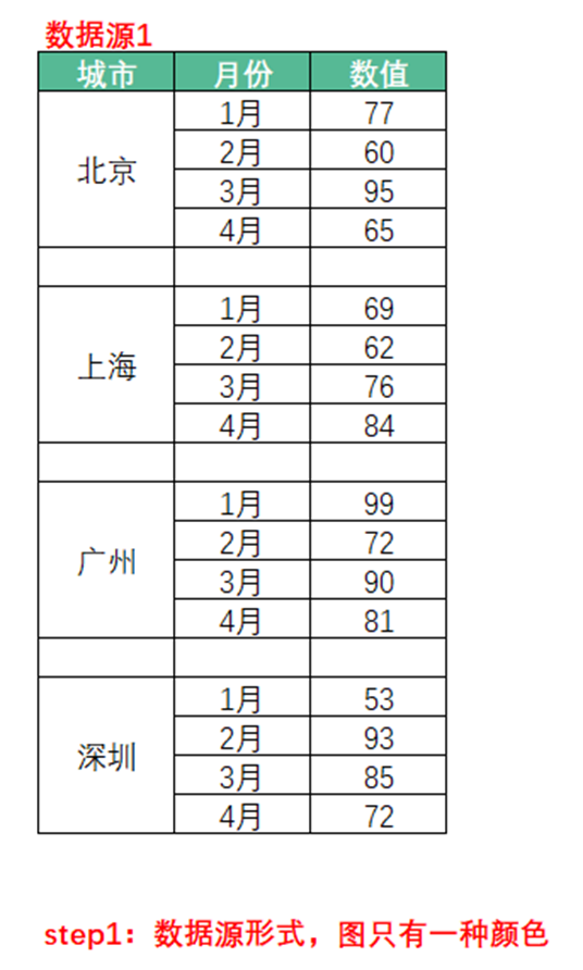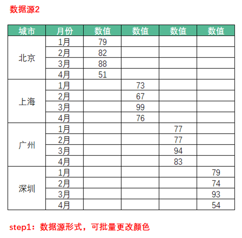 第二种数据源,我们调整成这种形式,就可以后续批量更改颜色了。