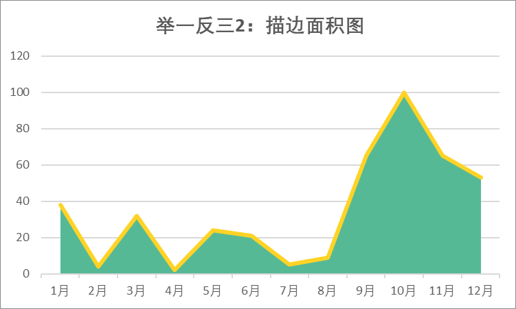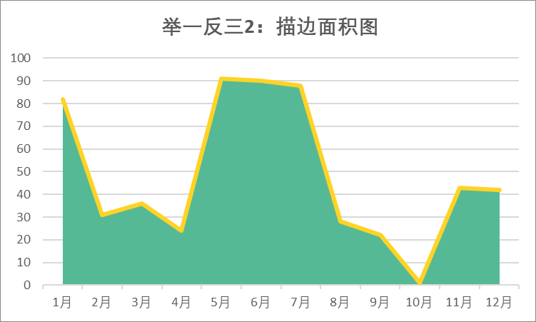 基于上述举一反三的线面柱形图,我们又可以联想到描边面积图,其实更好做了。
