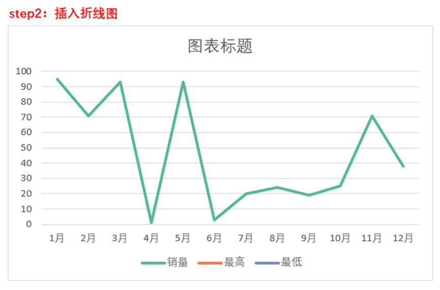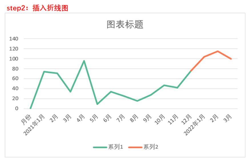 step2:插入折线图对原数据和两列辅助列数据插入一个折线图。