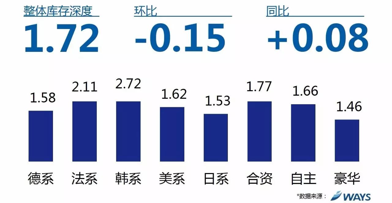 根据威尔森市场监测数据,4月经销商整体库存深度为1.72,环比下滑0.15,同比上升0.08,经销商库存压力有所缓解。