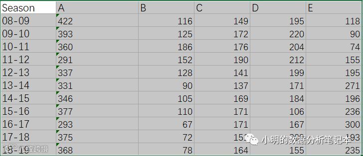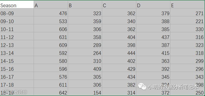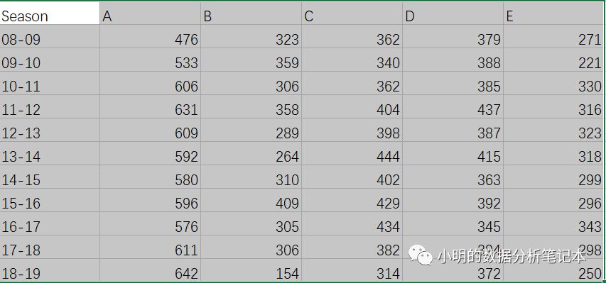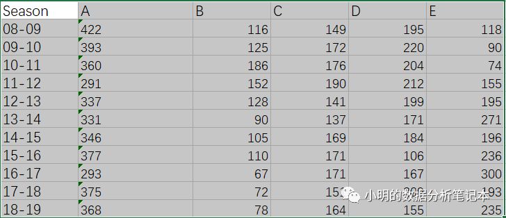 colnames(df1)<-c("Season","0~1","1~3","3~5","5~7","7~")