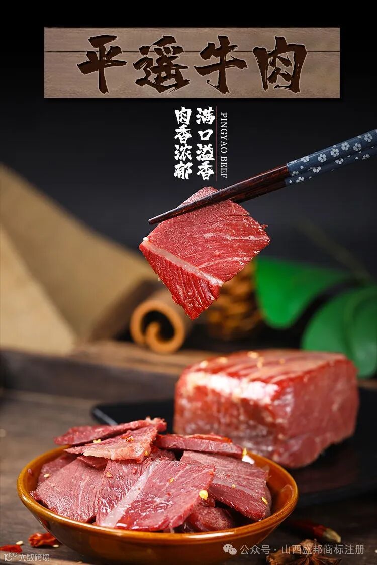 3、 **平遥牛肉**(品牌如冠云):山西省平遥牛肉集团有限公司的冠云平遥牛肉是山西省著名商标,也是平遥牛肉系列产品的“中华老字号”企业。该品牌承袭古法秘制,肉质鲜美,风味独特,是山西省非物质文化遗产。在商标保护方面,平遥县相关部门非常重视,如平遥县人民检察院联合多部门召开平遥牛肉·地理标志保护大会,提出要为企业提供平等互惠的营商环境和政策支持,抓好日常监管、检验检测,严厉打击制售假冒伪劣平遥牛肉的违法行为,全力保护好“平遥牛肉”金字招牌。企业自身也加强质量管理,注重品牌形象的维护,通过提升产品品质和服务水平,增强品牌的竞争力,共同维护平遥牛肉的品牌声誉。