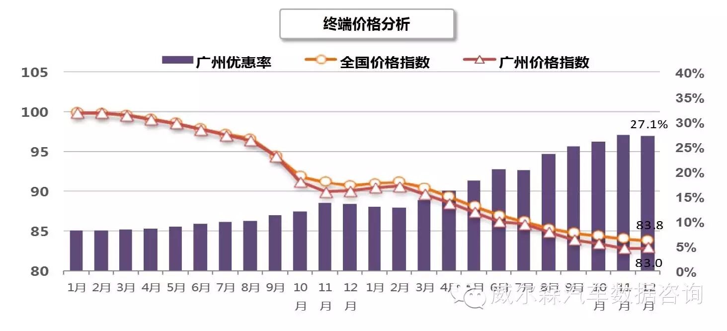 经销商反映,12月广州市场优惠回收,价格指数为83,环比上升0.1个百分点,终端优惠减少。