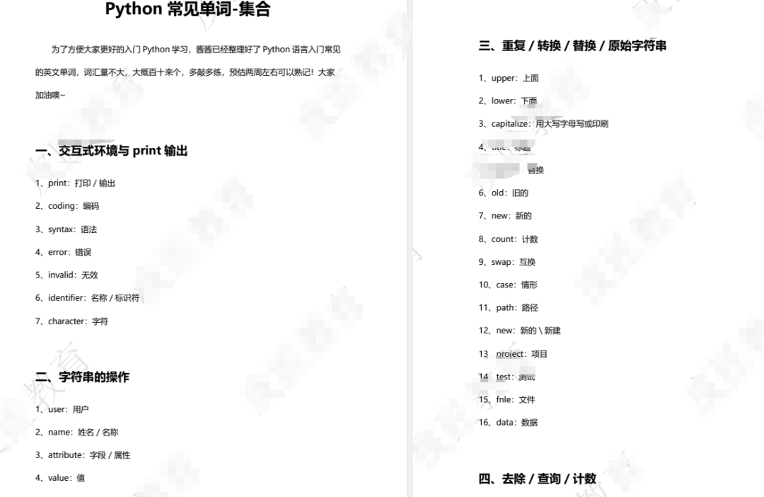 《Python入门常见单词集合》部分内容