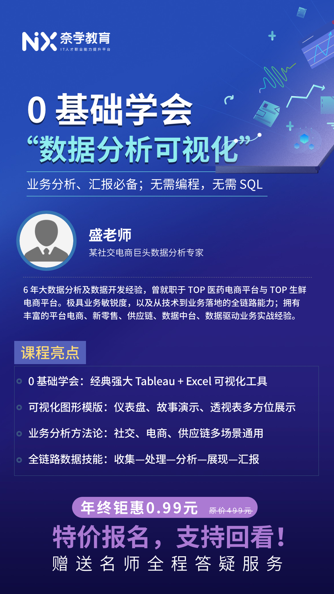 《数据分析可视化3天训练营》,由技术大牛亲授,手把手带你学习Excel数据获取、数据分析、数据可视化等,并通过现场实操多个实战项目,从入门到进阶,让你快速上手,get新技能!
