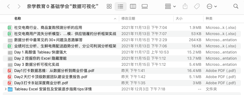 报名还可获赠Tableau 和 Excel 安装包+3 天训练营项目实操数据包+3 天训练营课程课件,领取后就能开始在线学习。
