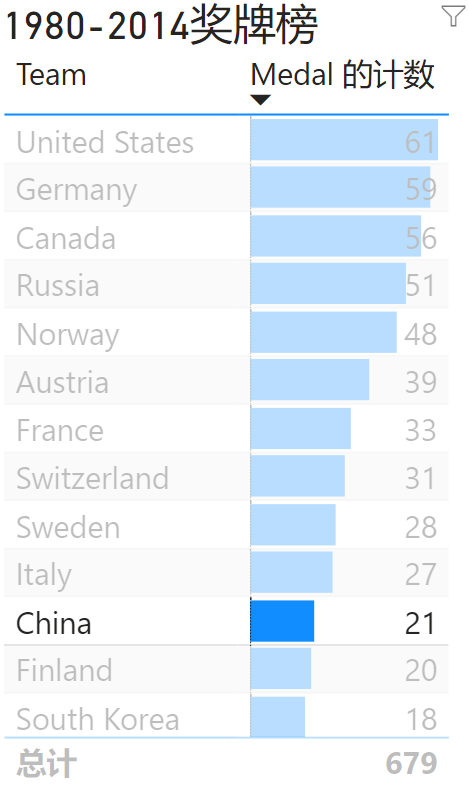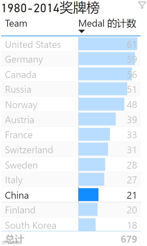北京冬奥正在如火如荼的进行当中,今天就来分享下冬奥会的可视化故事。我从网上搜到的数据集,截止到2014年索契冬奥会的数据。可视化的软件是通过POWER BI来实现的,让我们一起来了解冬奥的故事。