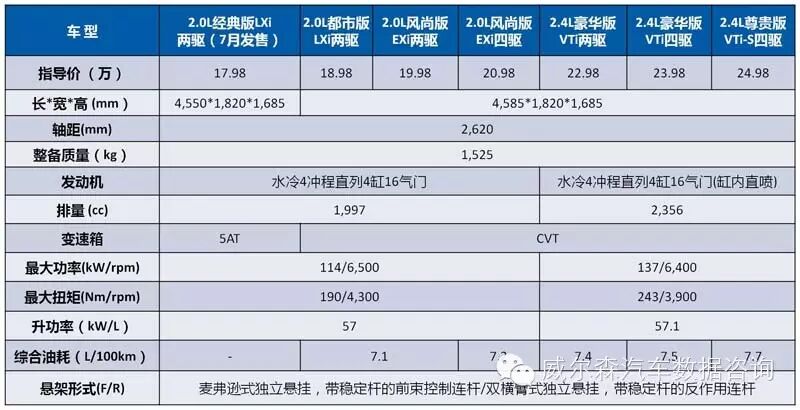 (4)配置:安全配置更丰富,全系新增胎压报警,2.4L车型均配备盲点显示、倒车雷达及全角度可视化倒车影像等;2.4车型还配备更多舒适功能配置,包括驾驶座电动腰托、前排座椅加热,顶配新增电动尾门等。