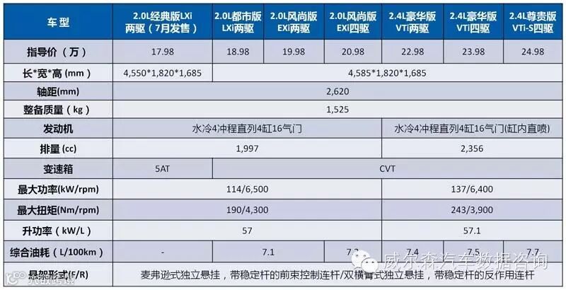 中期改款CR-V前脸更改最新设计,换装地球梦科技2.4L缸内直喷发动机,变速箱升级为无极变速器,同时新增怠速启停、胎压报警、盲点监测、电动尾门等魅力配置,定价小幅下调,特别选取一款14款车型更名为经典版同堂销售,整体竞争力有所提升。