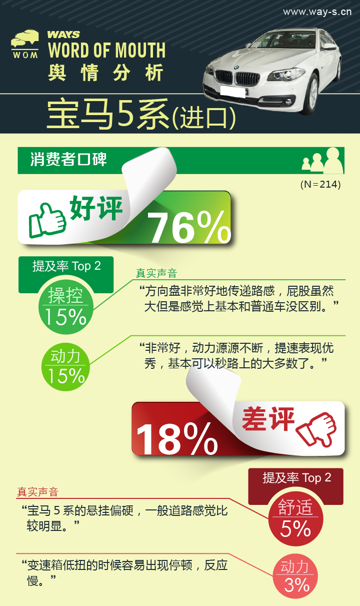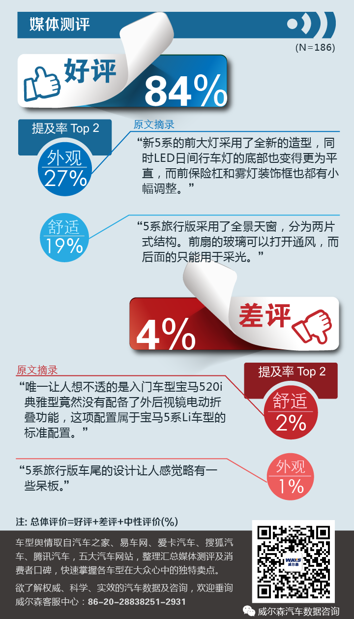 导读:五大汽车网站的媒体测评及消费者口碑,快速掌握汽车在消费者心中的独特卖点,舆情分析最新一期带大家看看宝马5系(进口)。