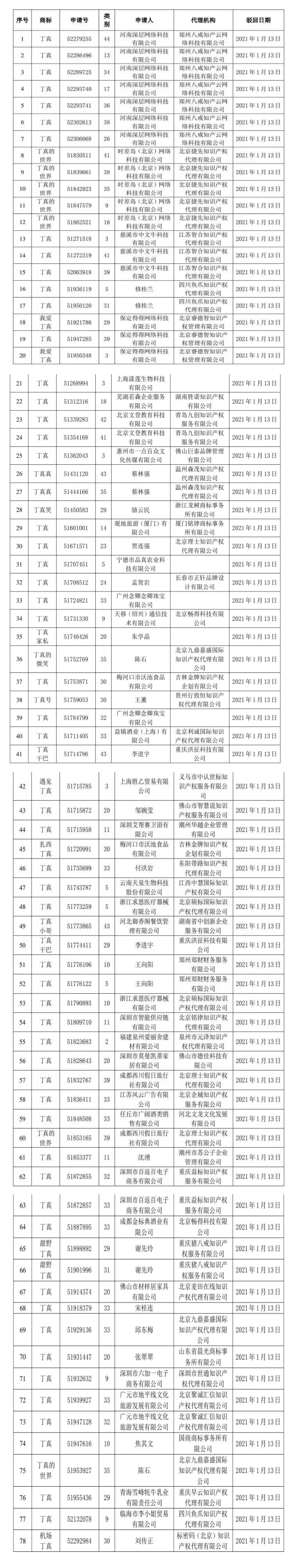 2月10日,国家知识产权局商标局于中国商标网发布了《关于依法驳回13件“丁真”商标的通告》、《关于依法驳回“丁真”等78件商标的通告》。