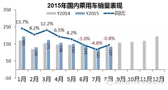 8月国内乘用车销量为137万辆,同比下降0.8%,连续3个月低于去年同期。