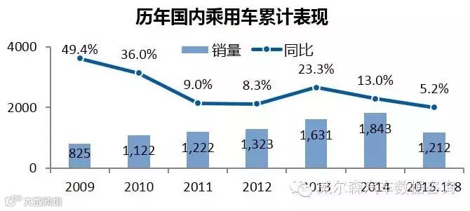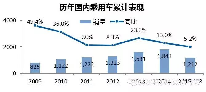 >> 乘用车累计销量为1212万辆,增速仅为5.2%。