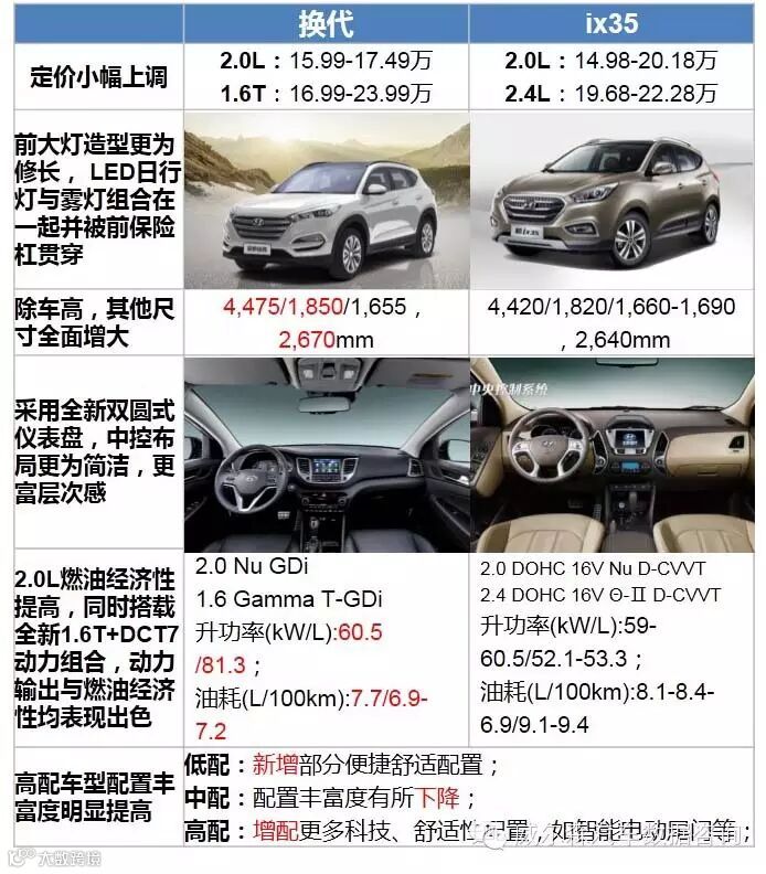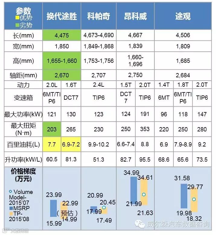 >> 定价、燃油经济性较占优势,尺寸表现占劣势