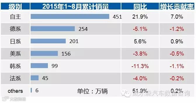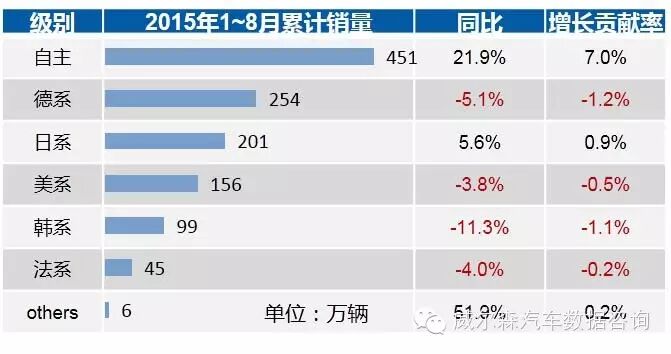 自主、日系销量同比上升,德/美/韩系销量下降。
