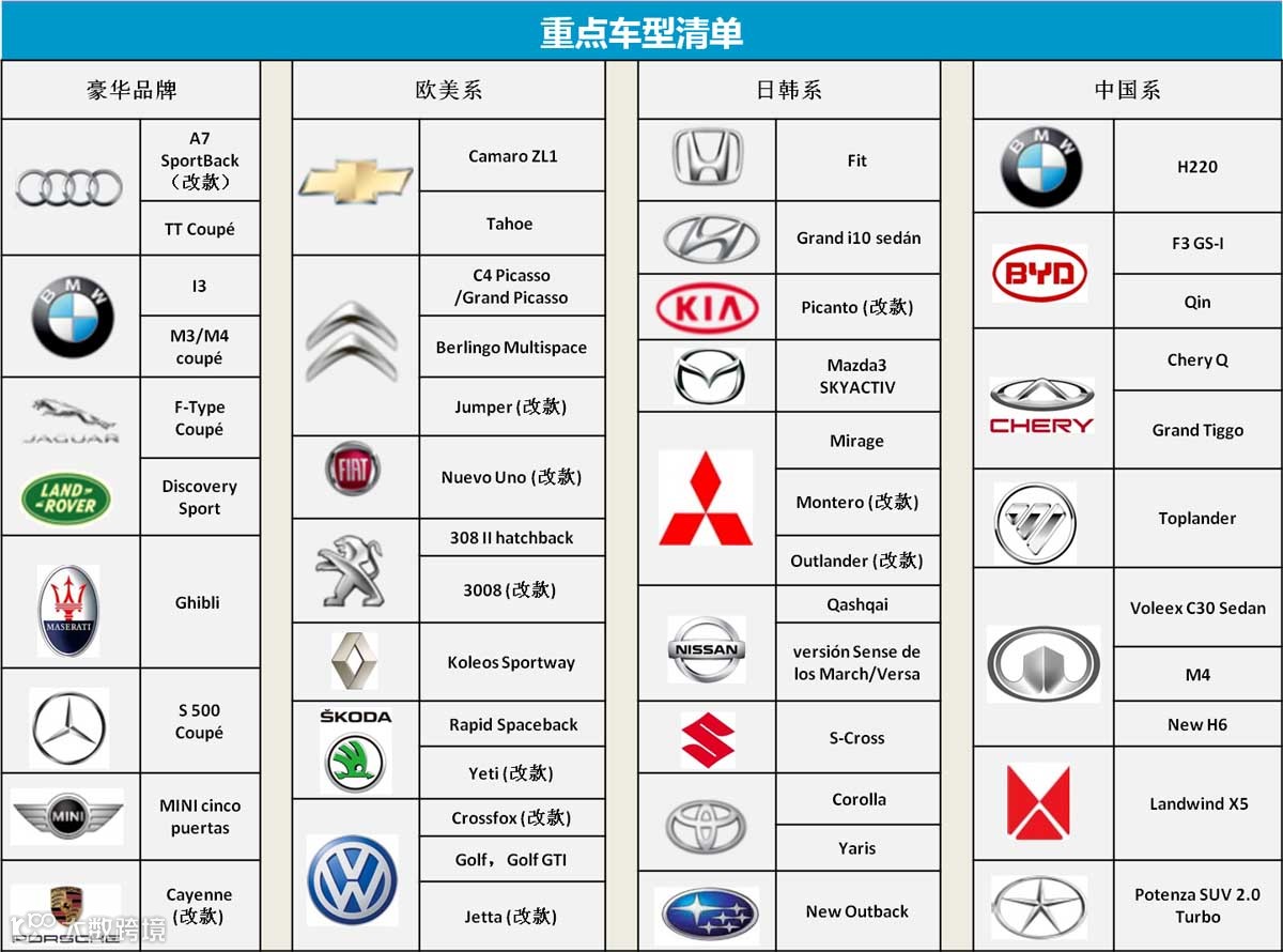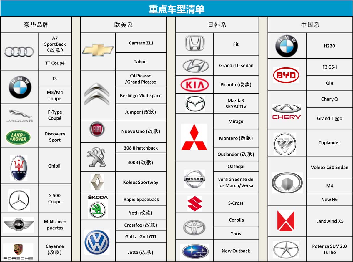 重点车型清单