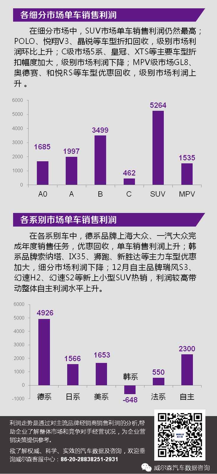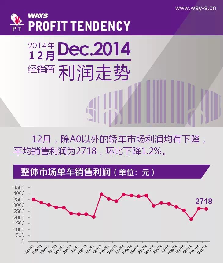 导读:12月,除A0以外的轿车市场利润均有下降,平均销售利润为2718,环比下降1.2%。