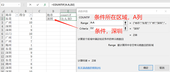 单元格,即等于深圳,也可直接输入“深圳”,记得加双引号,结果为
