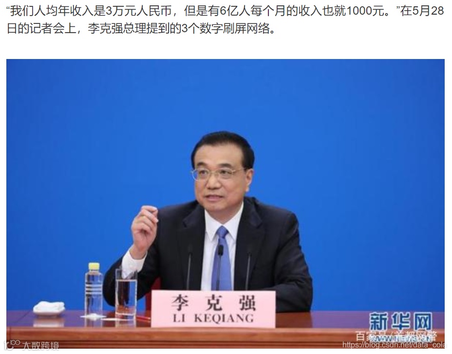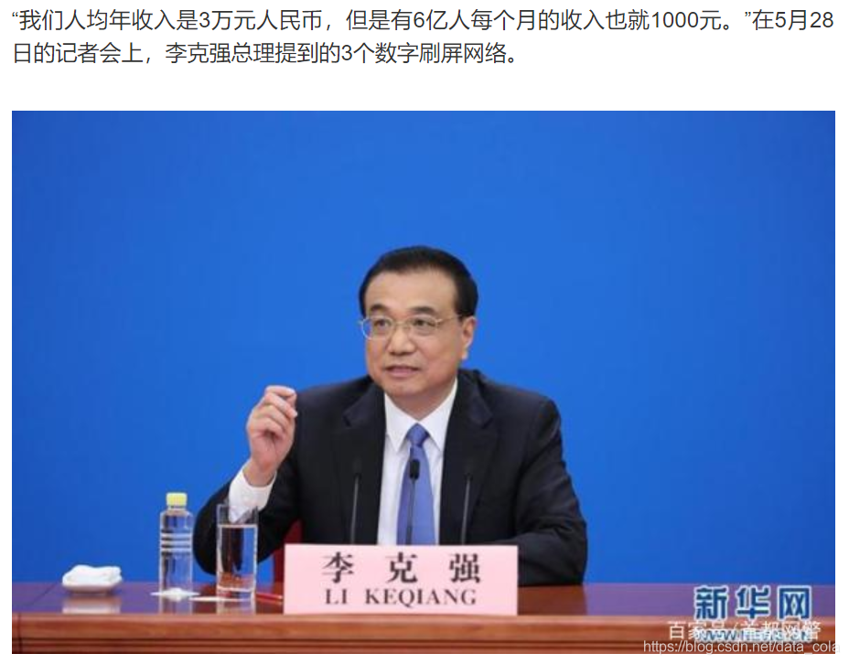 实际上这是李克强总理在2020年5月28日十三届全国人大三次会议闭幕后提到的: