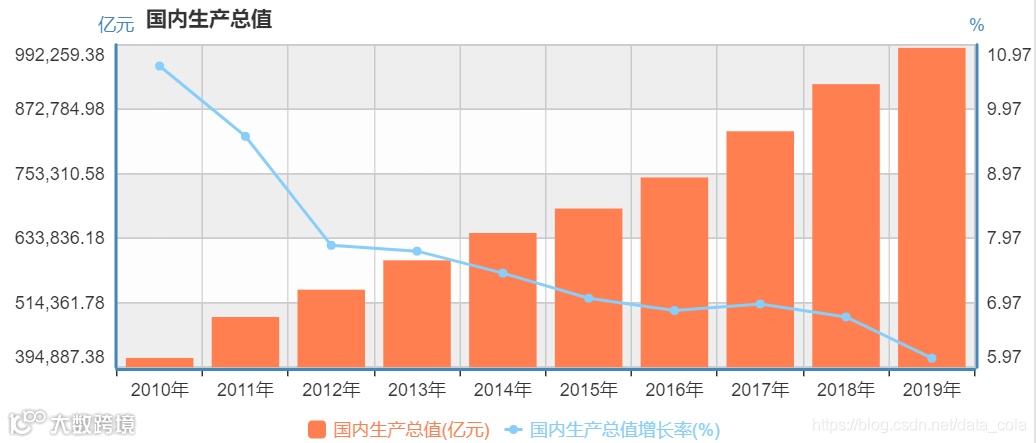 2011年我国GDP约48万亿,10年来涨了1倍。