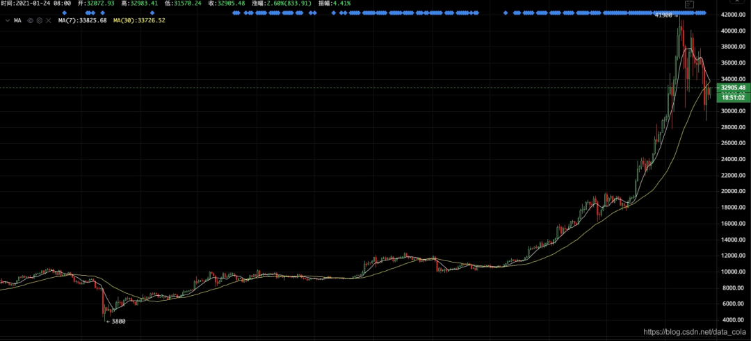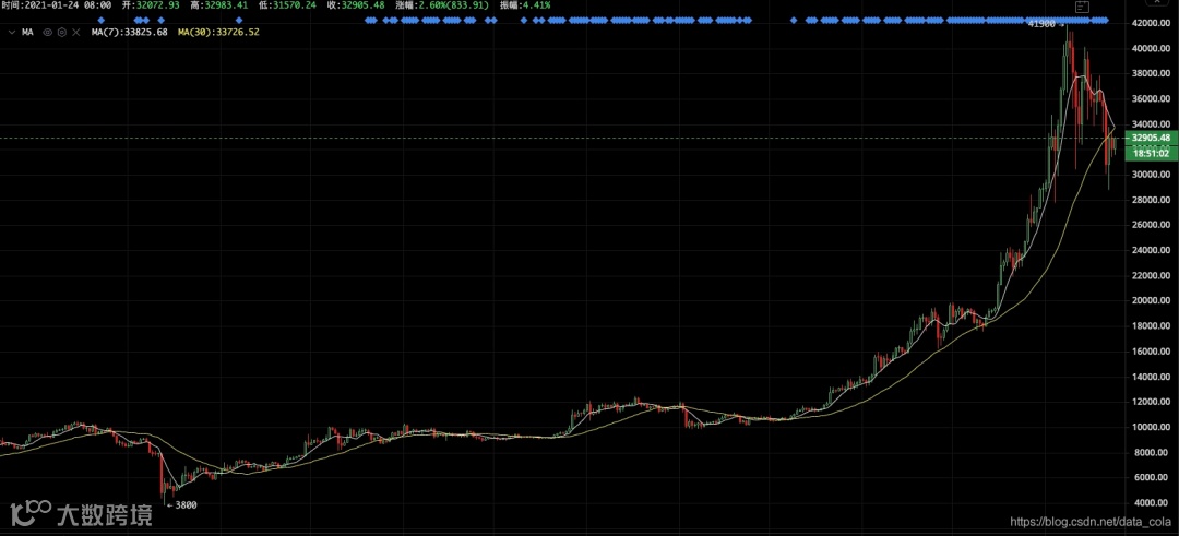 比特币最高4.9万美元,虽然现在回调了到了3.2万美元,但同比2020年年初(7200美元)还是增长了357%。